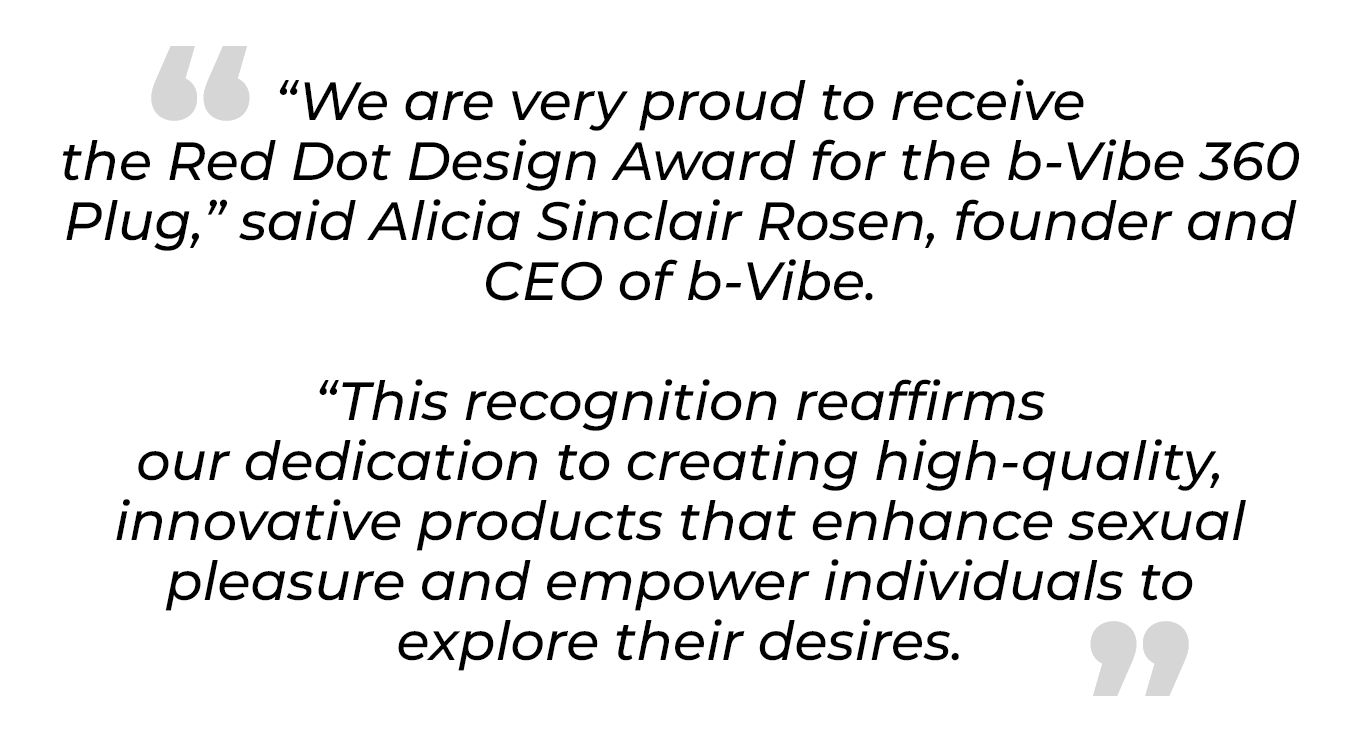 The b-Vibe 360 Plug, a sleek design featuring an ergonomic shape for direct stimulation and an external motor for dual internal and external sensations, has been honored with the prestigious Red Dot Design Award for outstanding product design.