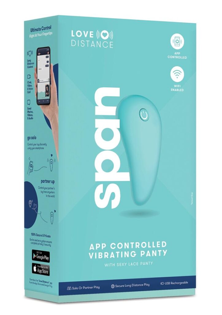 Take intimate playtime on the go with the app-controlled Love Distance Span. Featuring two sensual panties that will comfortably fit all bodies, this powerful yet discreet vibe is USB rechargeable and also comes with a satin travel case for convenient storage anywhere you go.