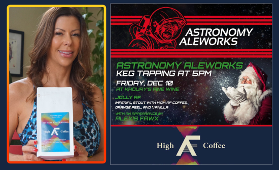 On December 10, 2021 by Jimmy RocksArticle Courtesy of Star Factory PR (HOLLYWOOD, CA) Alexis Fawx (https://twitter.com/AlexisFawx) teams up with Astronomy Aleworks (http://astronomyaleworks.com/) for a Christmas-themed drink Jolly AF. The collab beverage is a rich, full-bodied Imperial Stout infused with Alexis’s HighAF Coffee, orange peel, and vanilla. Coming in at 9.1% ABV. December 10th, Alexis will appear at Khoury’s Fine Wine & Spirits in Las Vegas to spread holiday
