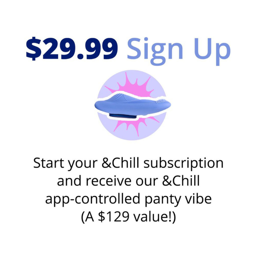 Sign up for $29.99 and receive OhMiBod’s &Chill wearable panty vibe and receive access to the OhMiBod Remote App, our cutting-edge technology that allows you to connect anywhere in the world with mind-blowing ways to play!