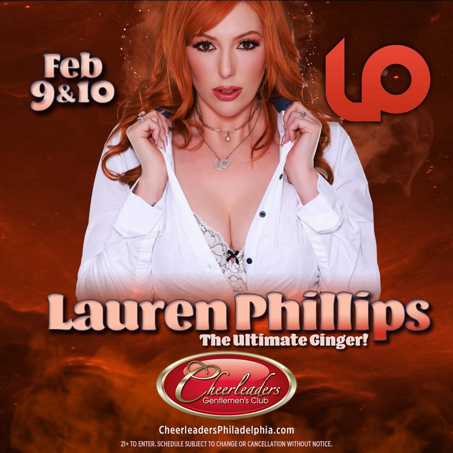 On February 9, 2024 by Adult All AccessArticle Courtesy of The Rub PR (Hollywood, CA) Sexy, statuesque, fiery redhead influencer, gamer, and multi-award-winning adult actress and director Lauren Phillips is headed to Philadelphia for an incredible two-night feature this Friday, February 9th, and Saturday, February 10th at the world-famous Cheerleaders Gentlemen’s Club. Lauren Phillips’ fans and Cheerleaders Philly club patrons are ready for