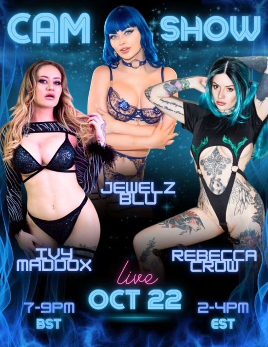 On October 19, 2023 by Adult All AccessArticle Courtesy of Star Factory PR (HOLLYWOOD, CA) Get ready for an unforgettable afternoon of naughtiness as three of the adult entertainment industry’s most hardcore hotties, Ivy Maddox, Jewelz Blu, and Rebecca Crow, come together for a steamy live OnlyFans cam show on October 22nd. Streaming from 2 PM – 4 PM ET (7 – 9