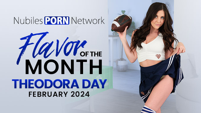 (Los Angeles, CA) After a hiatus from adult, Theordora Day has returned to the industry and Nubiles immediately booked for the Flavor of the Month. The sexy hottie with curves in all the right places is the February Flavor of the Month and has a new football/cheerleader-themed scene to celebrate her new title.